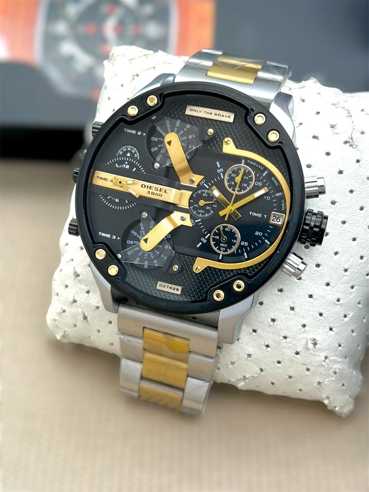 ✨Commanding and stylish, the Diesel Mr. Daddy 2.0 watch showcases an insanely detailed black silver Gold with Black Time Zone is available & ready to ship today. ✨